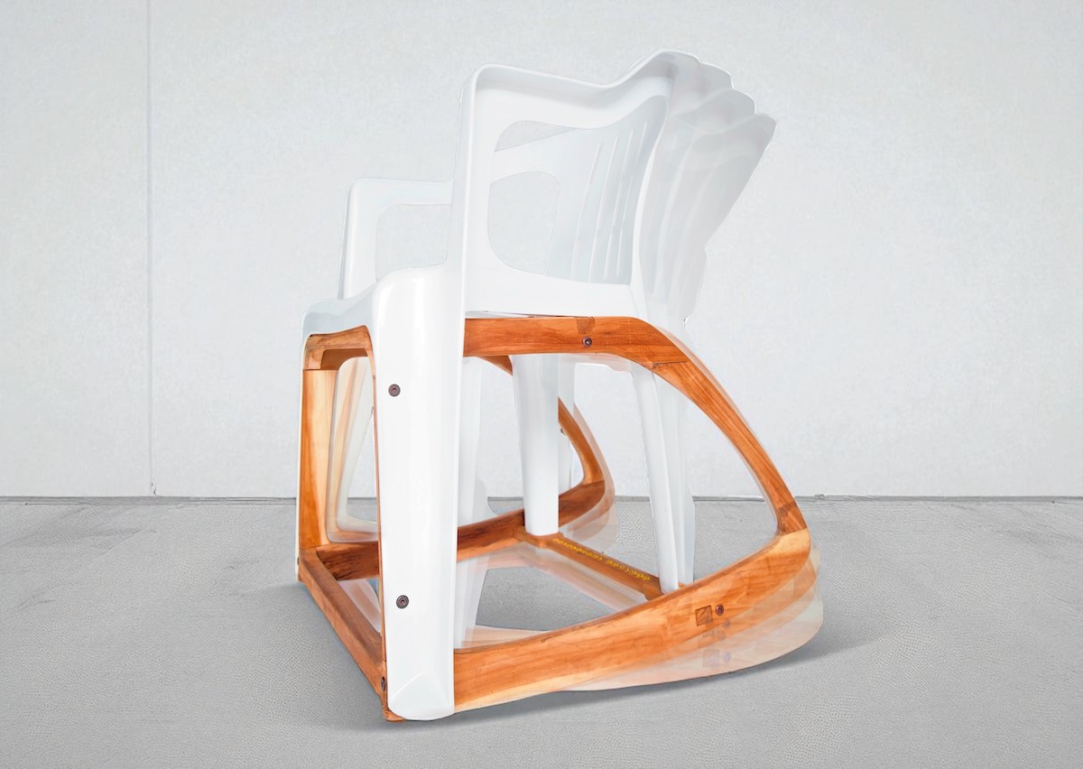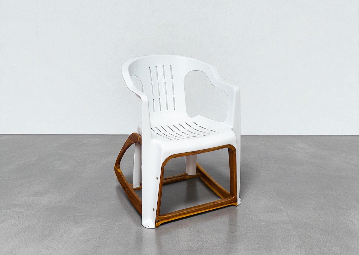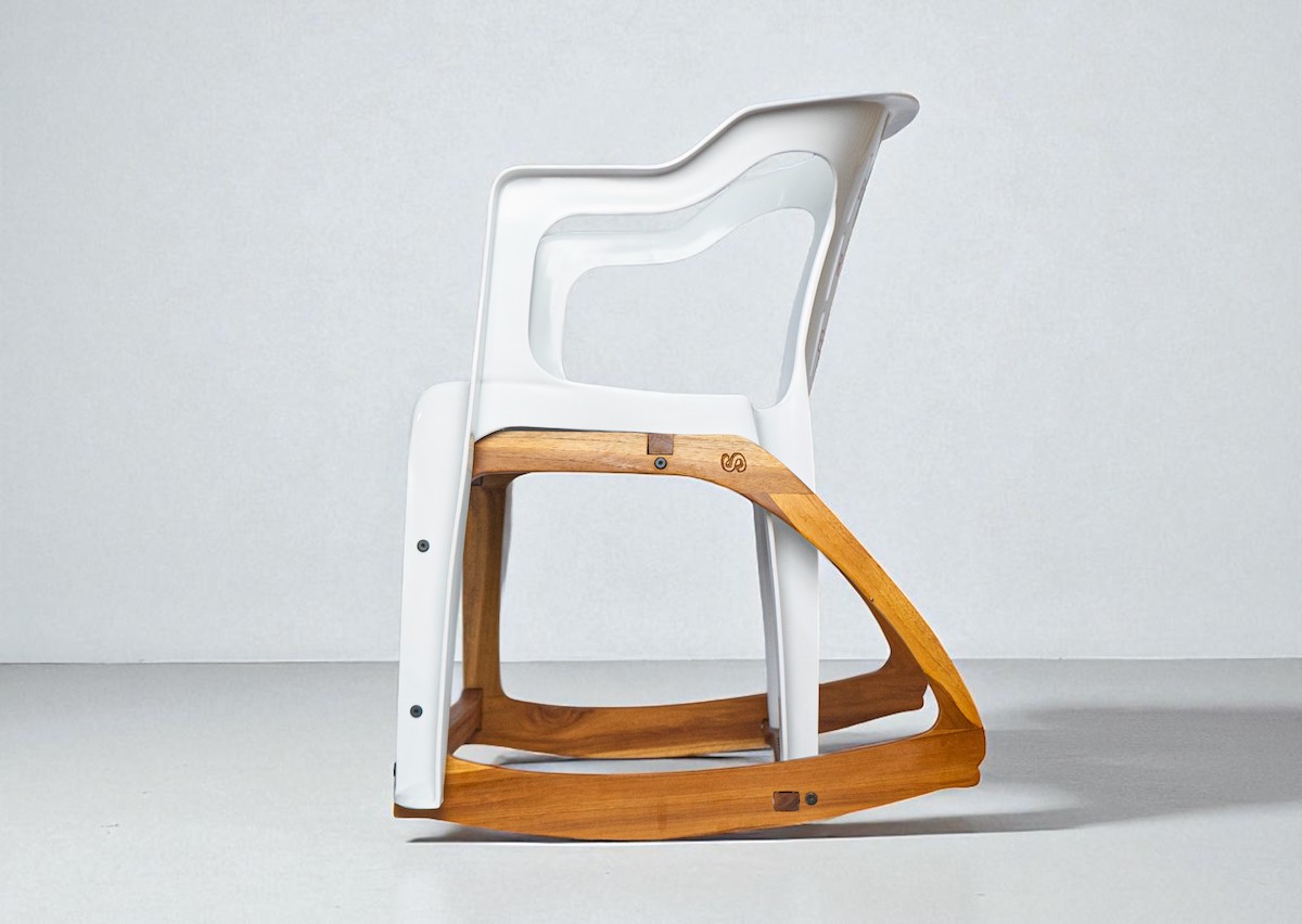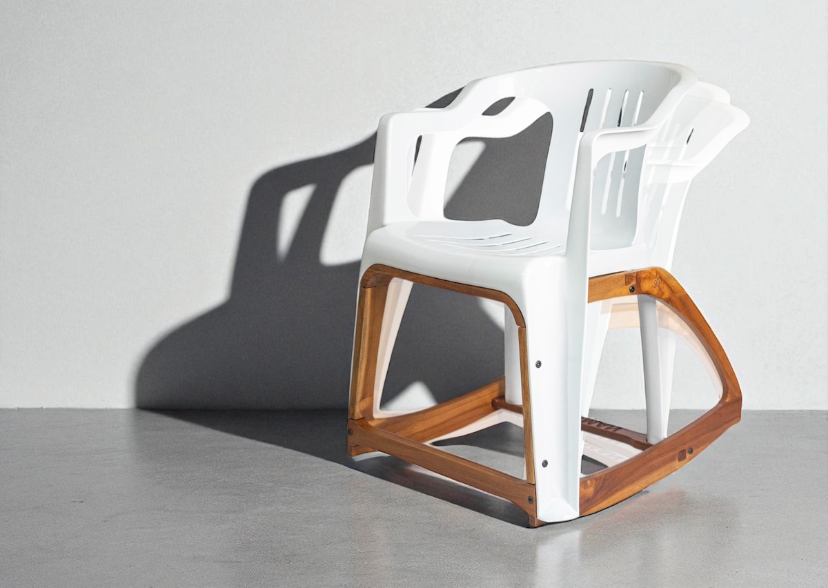 The Bar Roker is contemporary design that makes you smile. It’s an intricate piece of furniture that makes people look twice, laugh out loud then sit down and rock! Turning an everyday plastic chair into a gently swaying, elegantly resolved and extremely comfortable rocking chair reaffirms our faith in good design. The Bar Roker engages with us, stimulating imagination, encouraging curiosity and causes us to re-evaluate how we experience the world. The Bar Roker combines industrial manufacturing processes and the handmade.